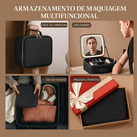 Necessaire com Espelho LED Integrado – Organização e Beleza na Palma da Mão